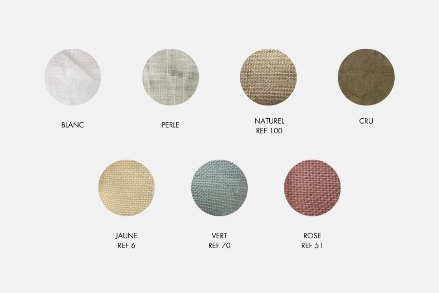 Matière : une face 100% lin  – une face jersey de coton –  bride élastique recouverte de lin