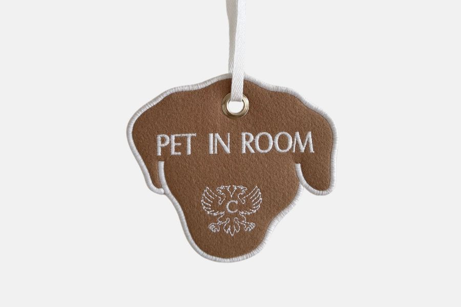 This pet in room door hanger for hotels is made of felt. This animal door hanger has a cute dog’s shape. It can be embroidered on one or two sides with a pet in room message. You can choose between different colors of felt to combine with the decoration of your hotel. This animal room sign is highly recommended for pet-friendly hotels. It is the perfect way to let know that there is a animal in the room. This custom animal door hanger is handmade in Portugal. This pet in room door hanger will definitely create a different customer experience. The door hanger is the key element of a hotel’s communication, and is an opportunity to differentiate yourself from your competitors. Many travelers are pet owners and enjoy travelling with their beloved companions. Often, finding pet-friendly hotels is a frustrating challenge. More than ever, pet-friendly hotels are gaining in popularity..