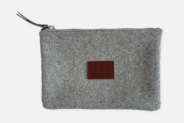 We love this wool felt and leather pouch, easy to carry and slip into any bag and available in 2 sizes. It is made of 100% Portuguese wool felt called burel and vegan tanned leather. Customizable with an engraved logo, this is the perfect sustainable gift for the winter season.